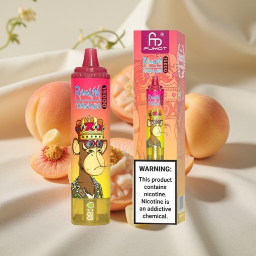 Fumot RandM Tornado 15000 Puffs 25ml Mesh Coil Type-C LCD Peach Ice