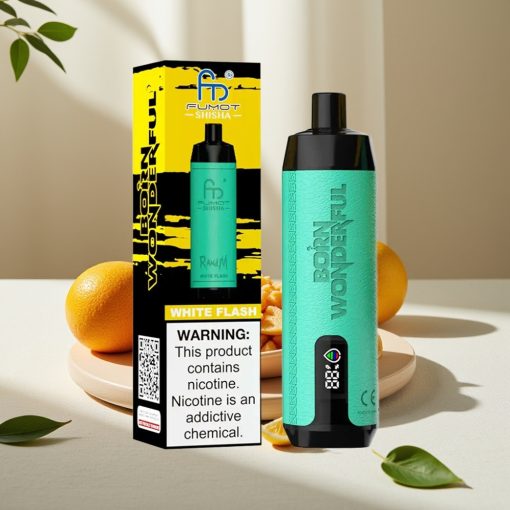 RandM Fumot Shisha 10000 Puffs 18ml LED Type-C Blanc Éclair