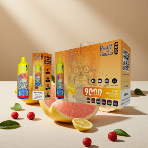 RandM Fumot Tornado 9000 Puffs 18 mL Mesh Coil RGB Display Pink Lemonade